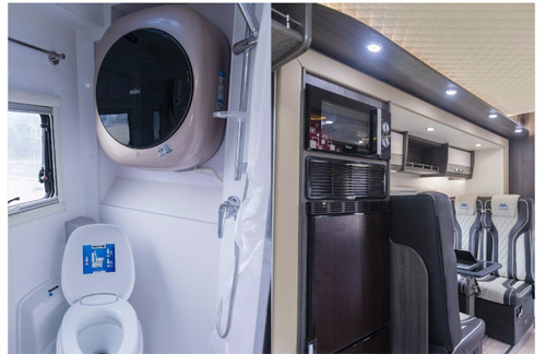 主要配置方面,這款隆翠暢游C房車搭配1200W太陽能板,1200Ah鋰電池,240升凈水箱。新車采用了整車保溫設(shè)計,確保用戶在環(huán)境溫度極低的條件下,也能在房車中舒適度過。車身加厚,額頭處厚度可達(dá)70mm,擁有良好的隔熱效果,使得車內(nèi)車內(nèi)制冷制熱效果更好。新車還融入了熱回收系統(tǒng)設(shè)計,在高海拔低氣溫環(huán)境下,智能溫控系統(tǒng)開啟自動加熱模式,維持鋰電池的正常運行,這是這款車在用戶體驗上的最大進步。(圖/來源于隆翠房車官方微信公眾平臺 文/21rv 王海龍)